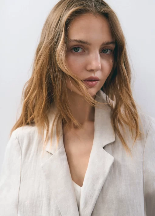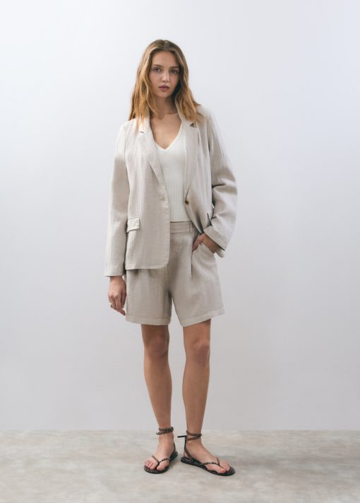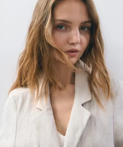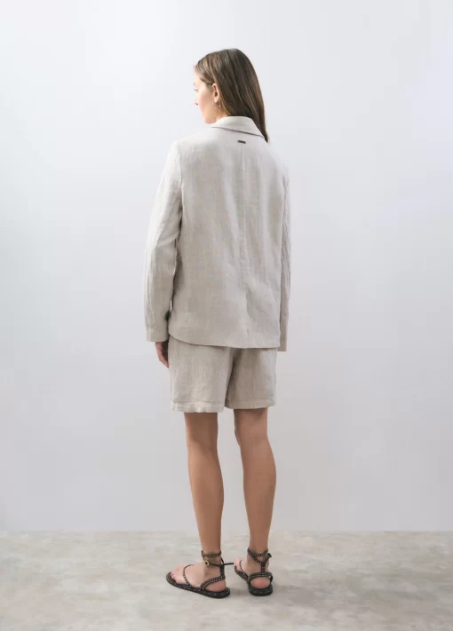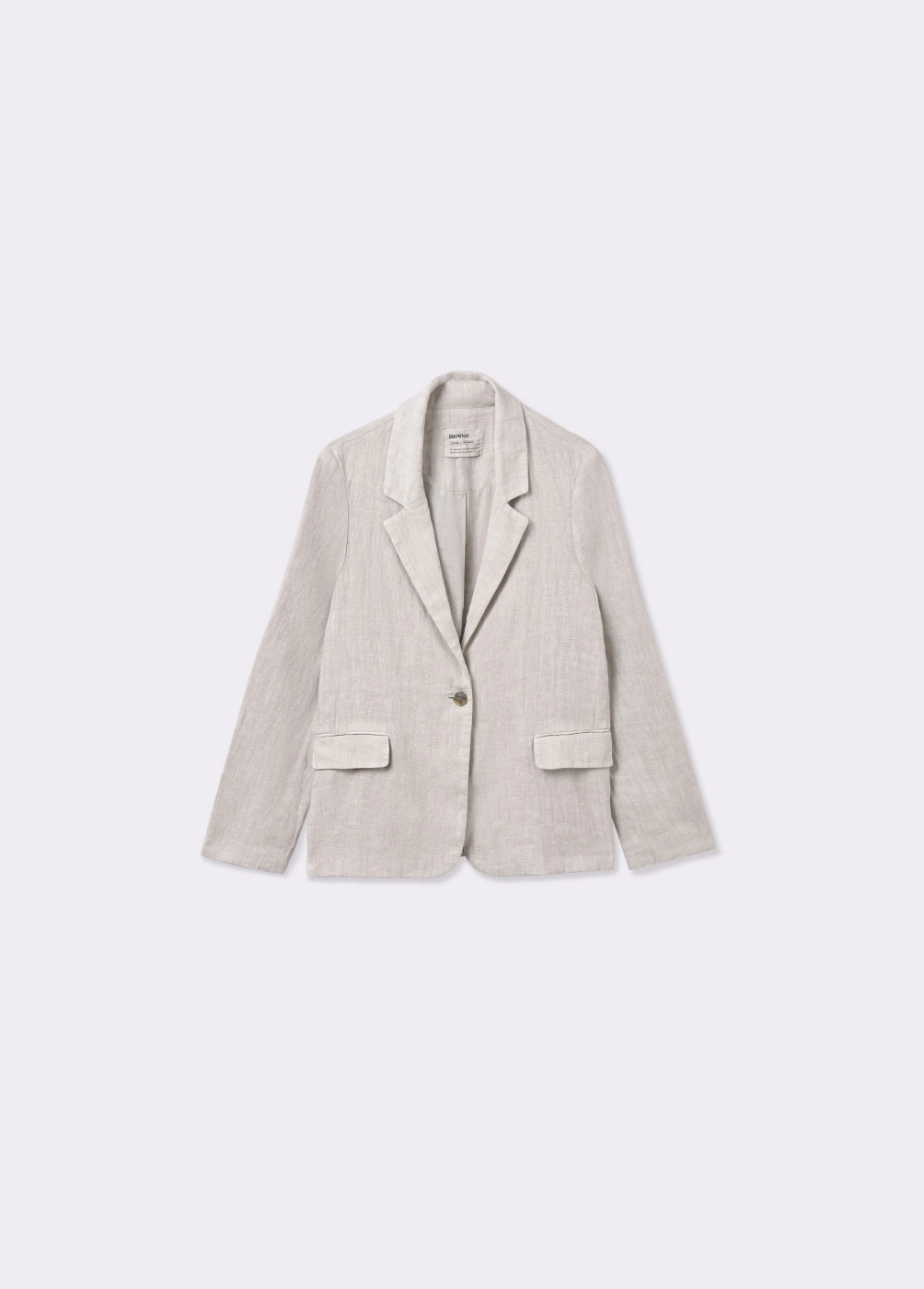 Americana 100% de lino con detalle de bolsillos, solapas y cierre mediante botón.