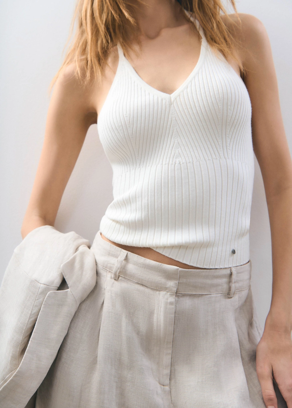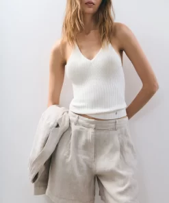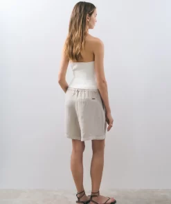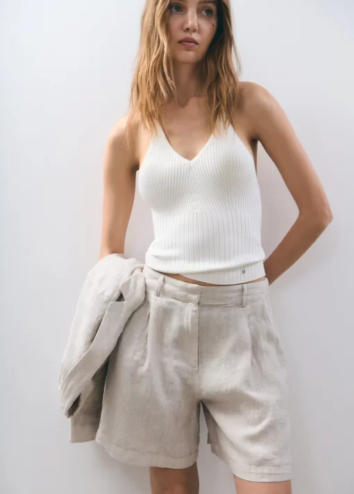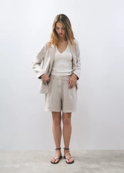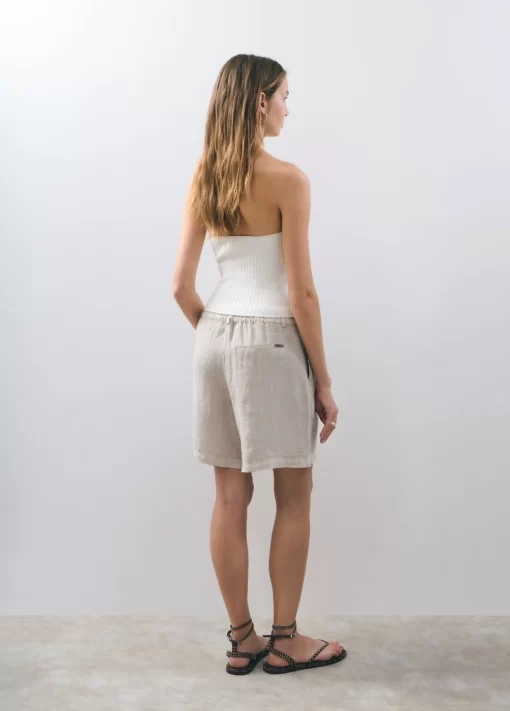 Bermuda 100% de lino. Cierre mediante cremallera y botón.