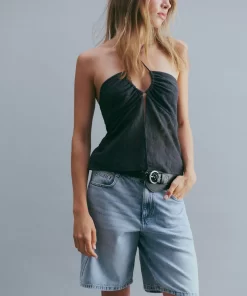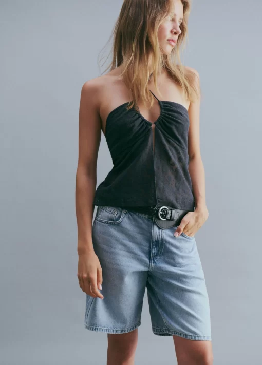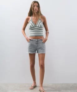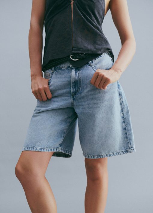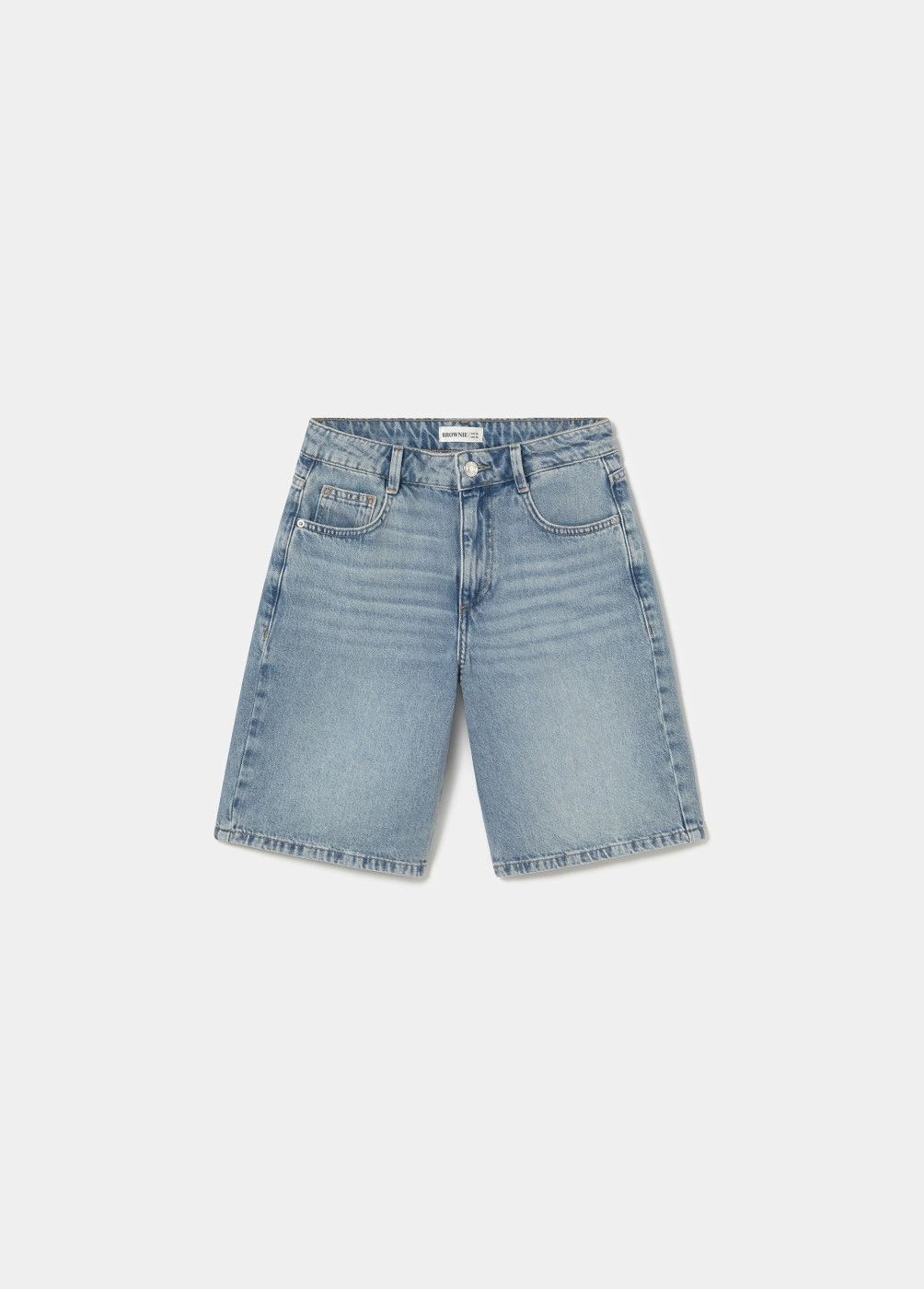 Bermuda larga básica. Cierre mediante cremallera y botón.