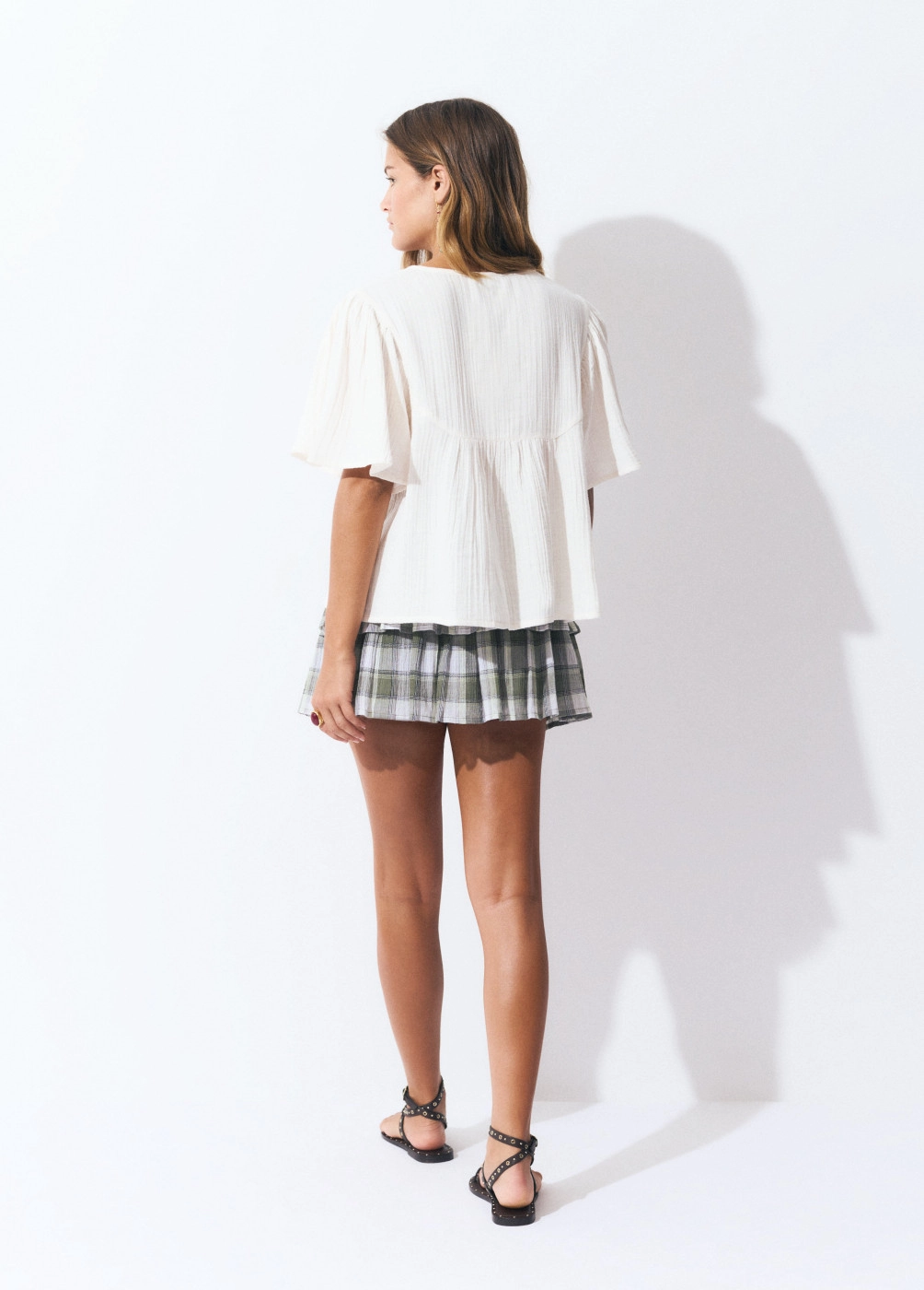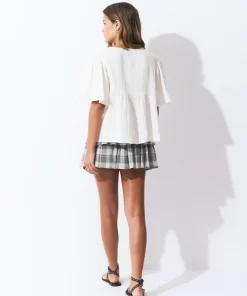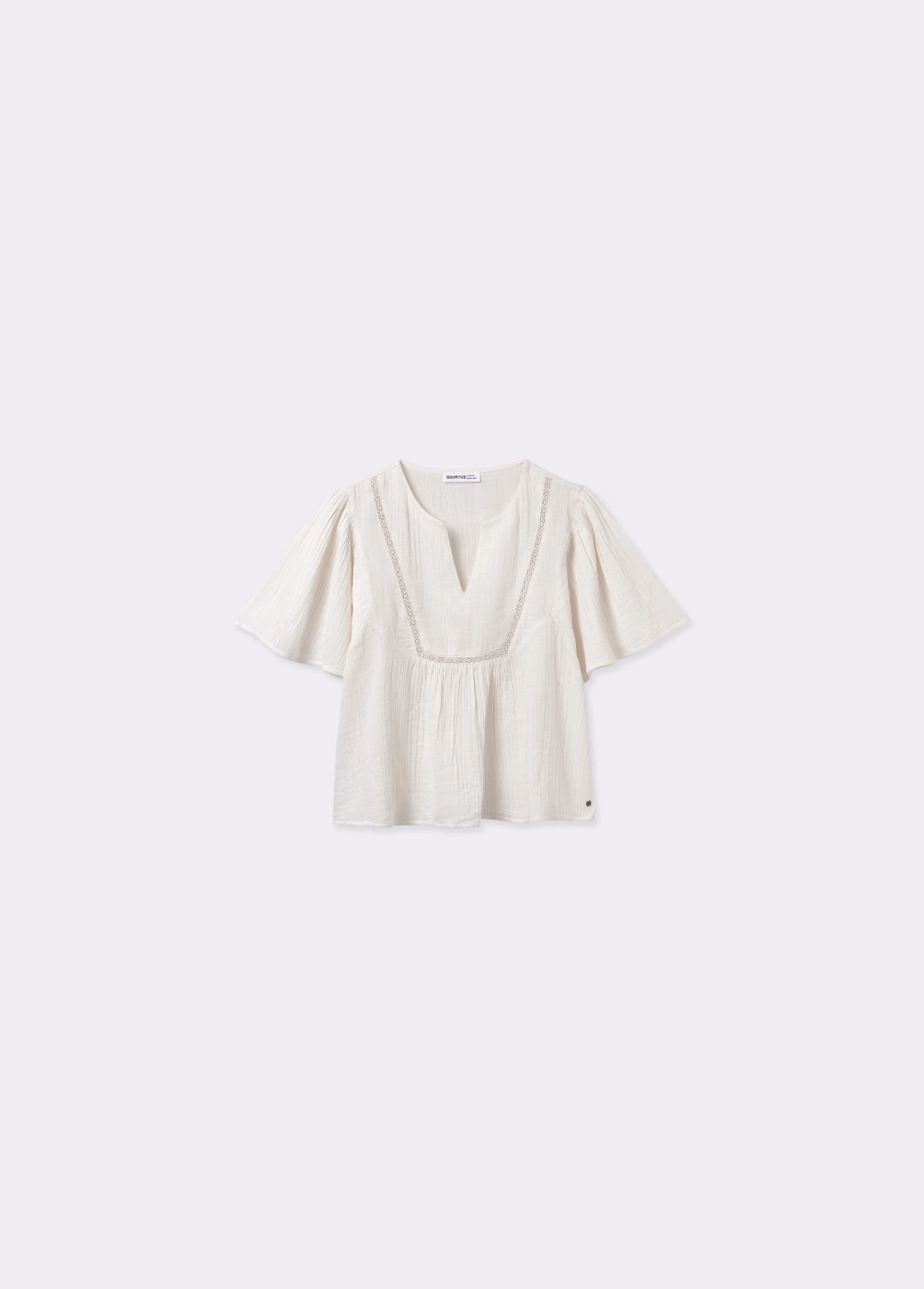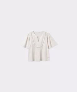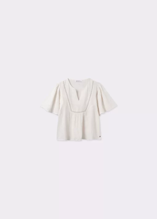 Blusa de dobletela de manga corta y cuello de pico.