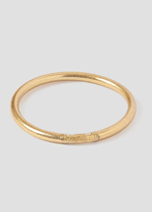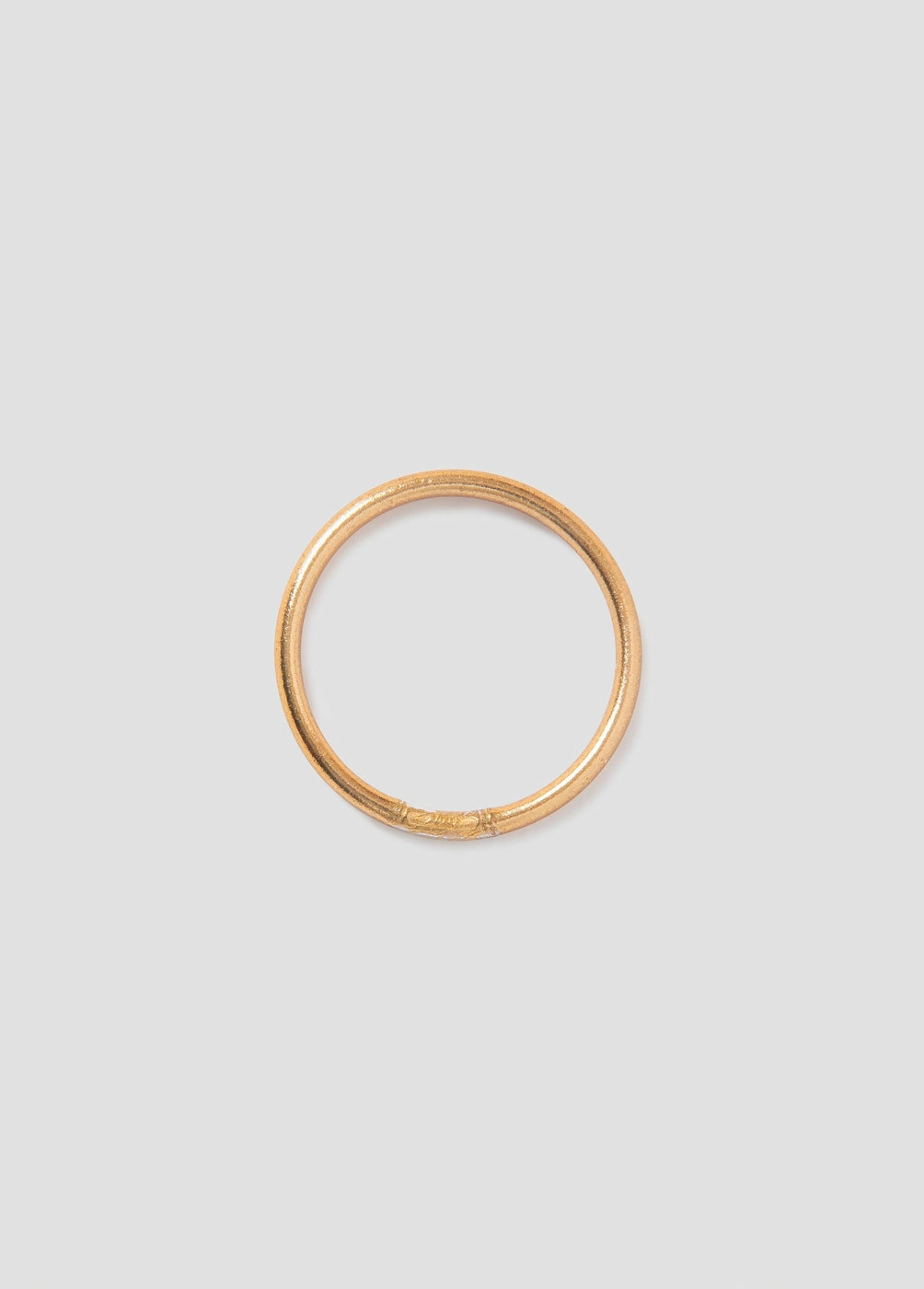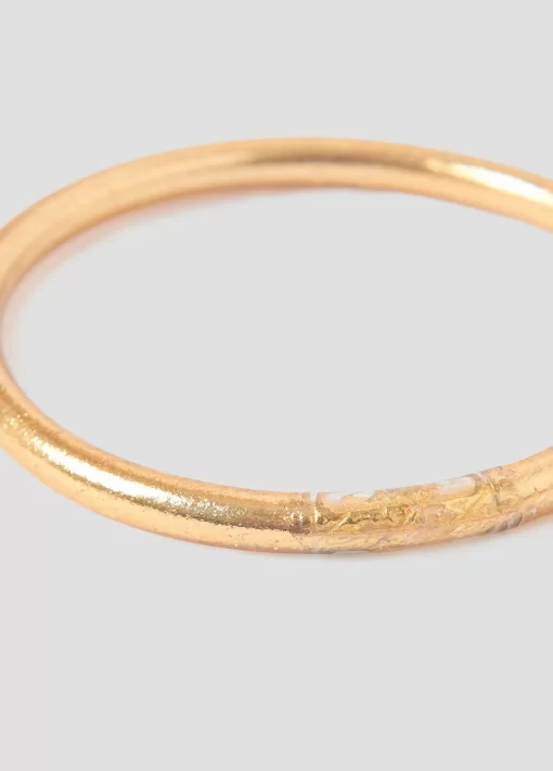 Pulsera dorada Pan de Oro con grabado LUCKY and RICH hechas a mano.Las pulseras Pan de Oro difunden amor, suerte, protección, unidad y buena fortuna para quien las lleva.