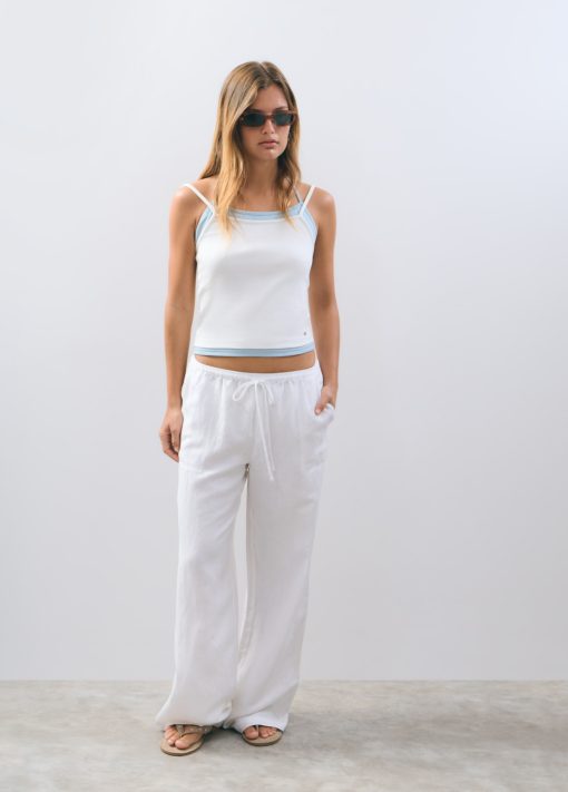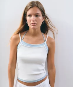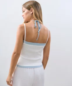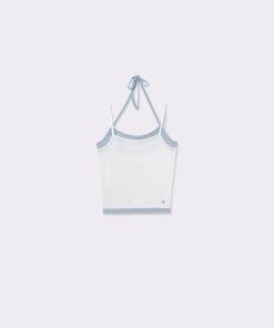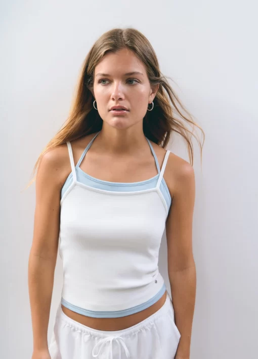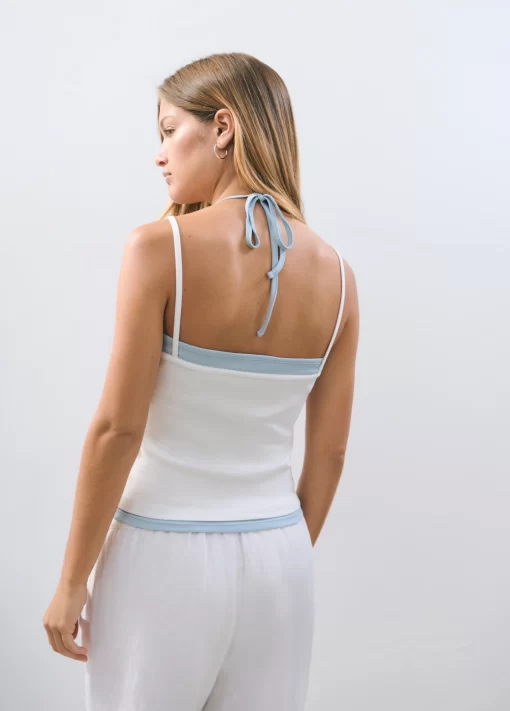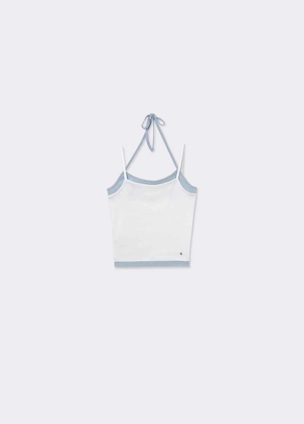 Camiseta efecto doble de tirantes con cuello halter mediante lazada.