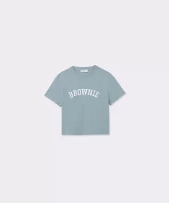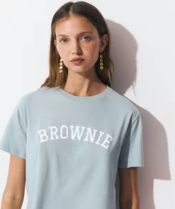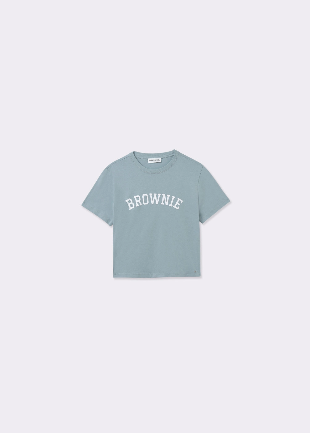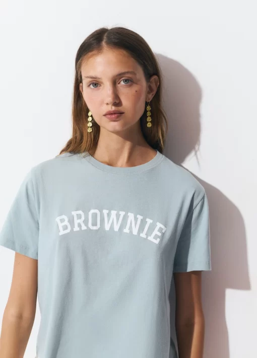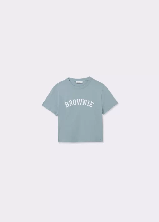 Camiseta de algodón de manga corta, cuello redondo y logo Brownie en la parte frontal.