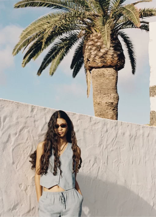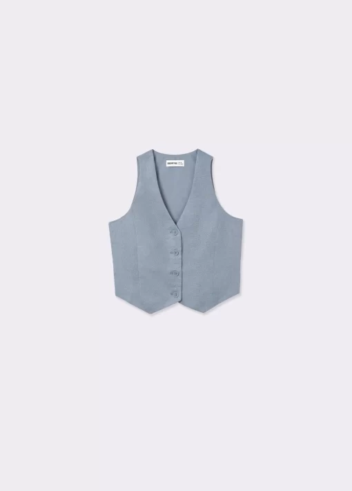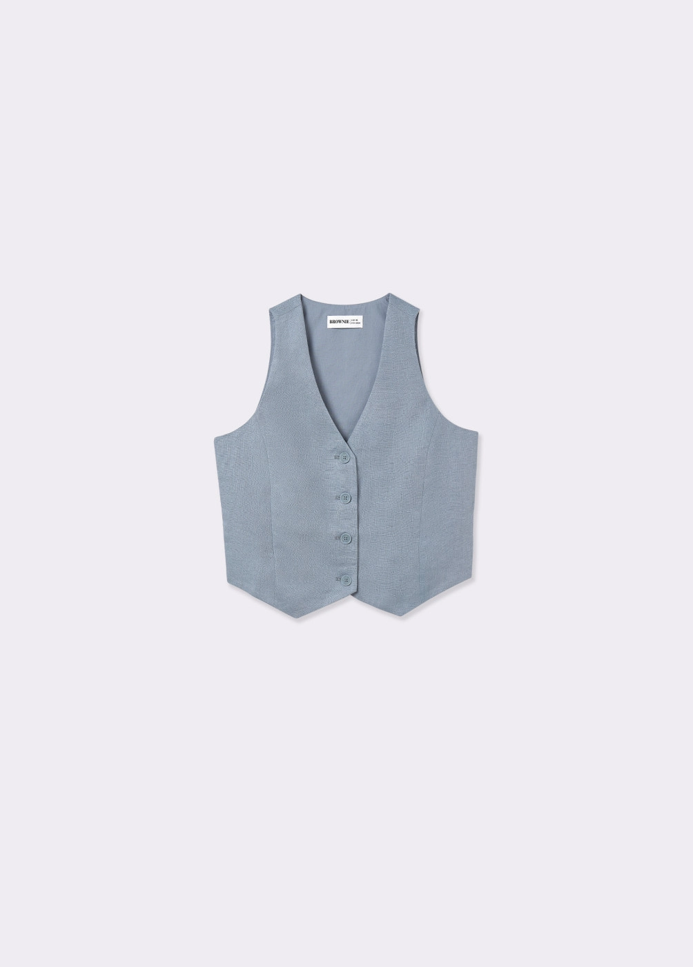 Chaleco lino | BROWNIE AZUL MEDIO | Mujer Tops