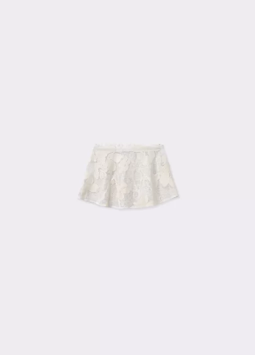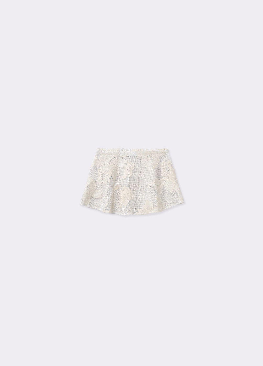 Falda corta semitransparente con bordado de flores.