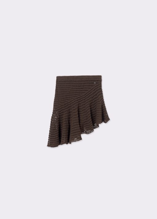 Falda de crochet asimétrica con goma en la cintura.