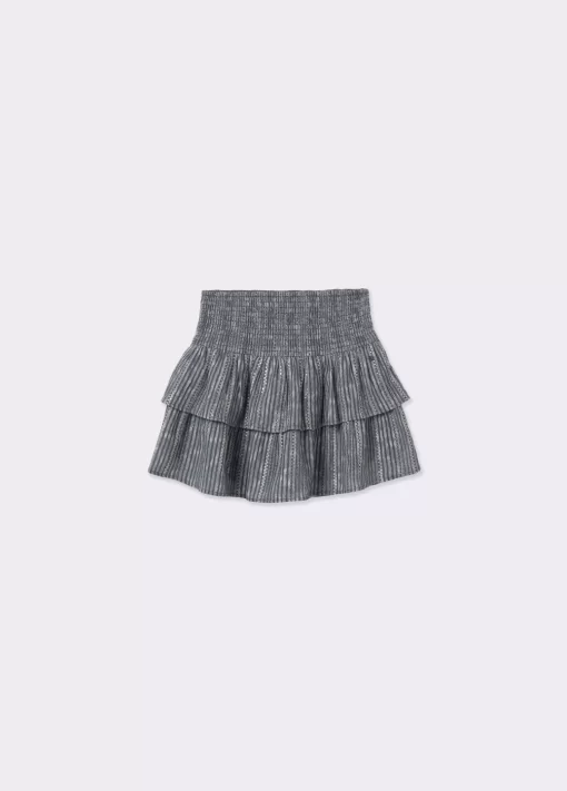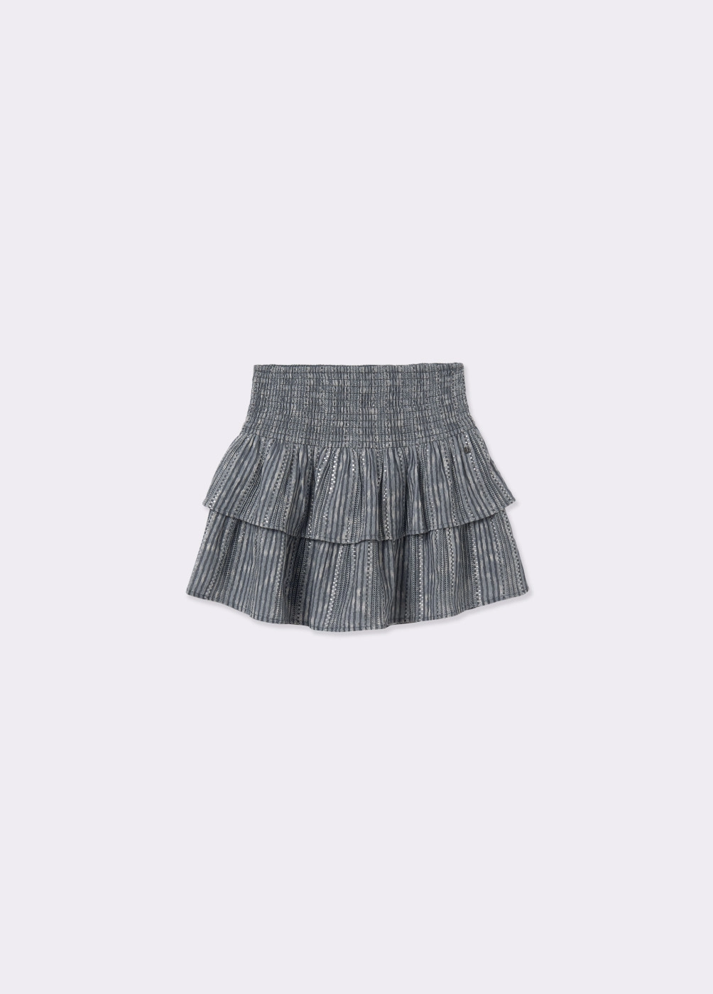 Falda corta de rayas con smock, volantes y detalles con lurex.