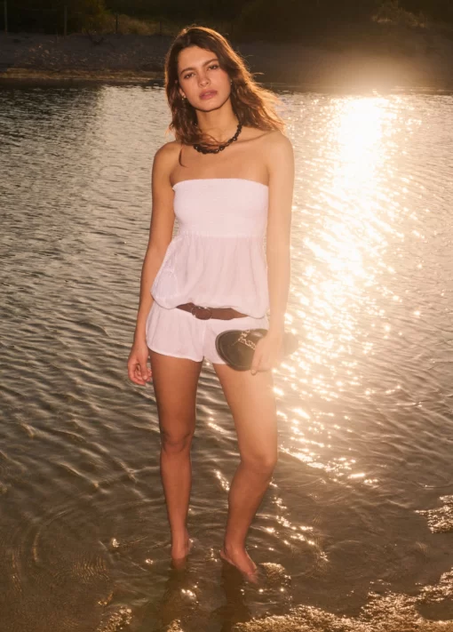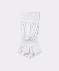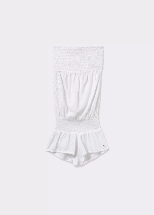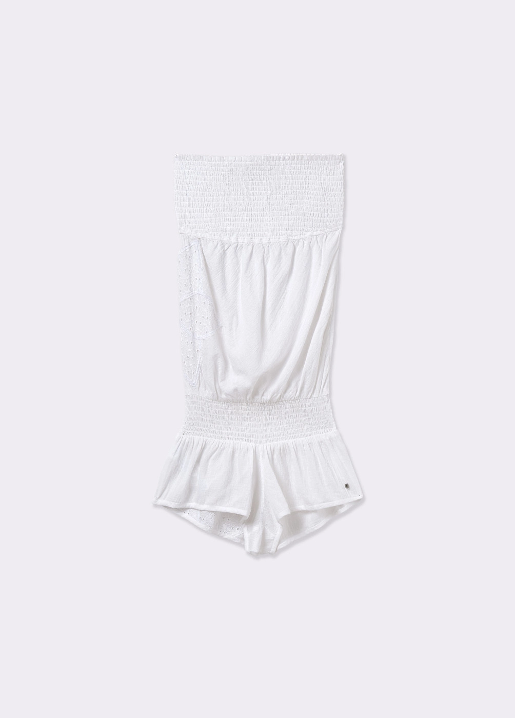 Mono corto sin mangas con smock en la parte superior y en la cintura.