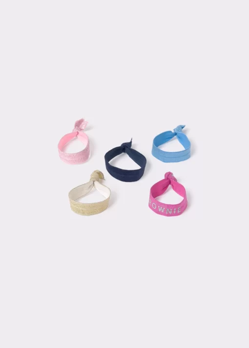 Pack de cinco gomas elásticas de diferentes colores con logo.