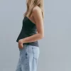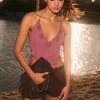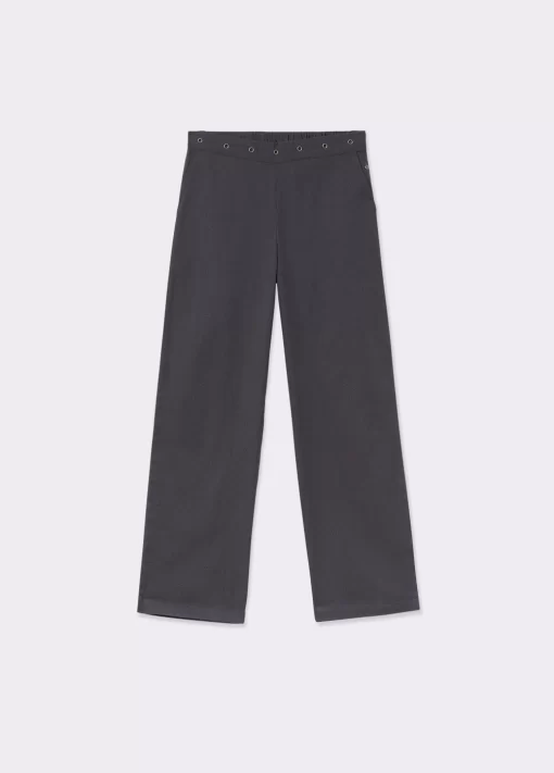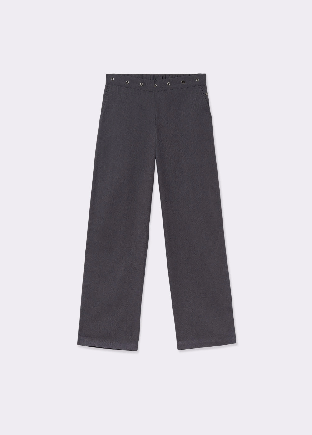 Pantalón largo con detalle de eyelets en la parte superior y goma en la cintura.