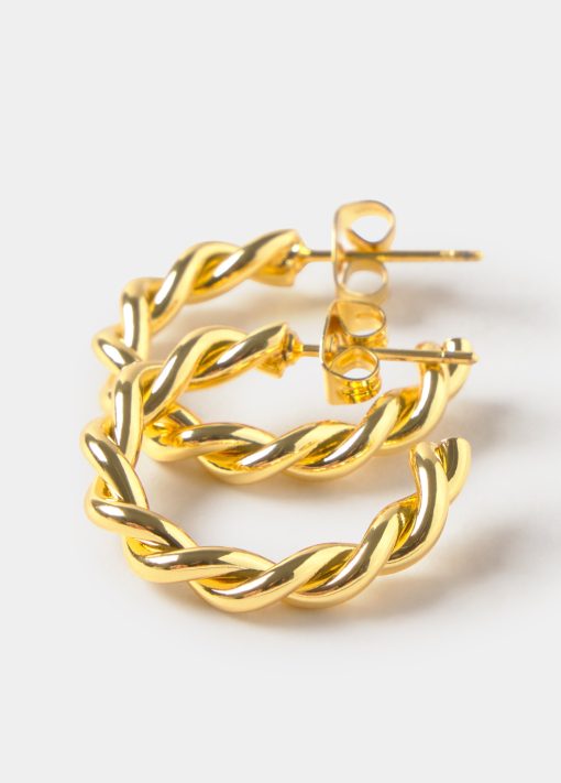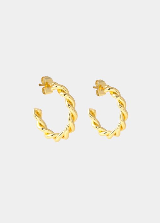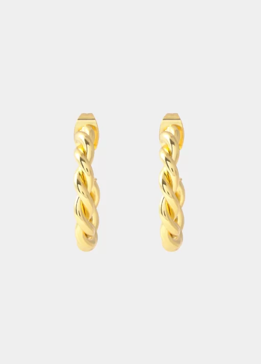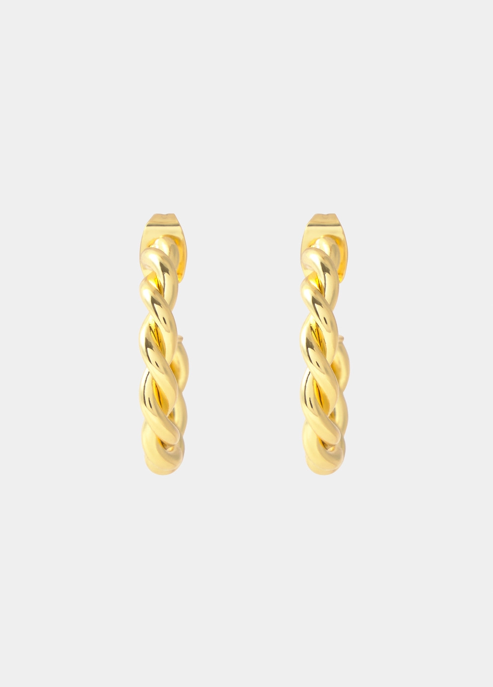 Pendientes entrelazados en color dorado. Cierre de presión.