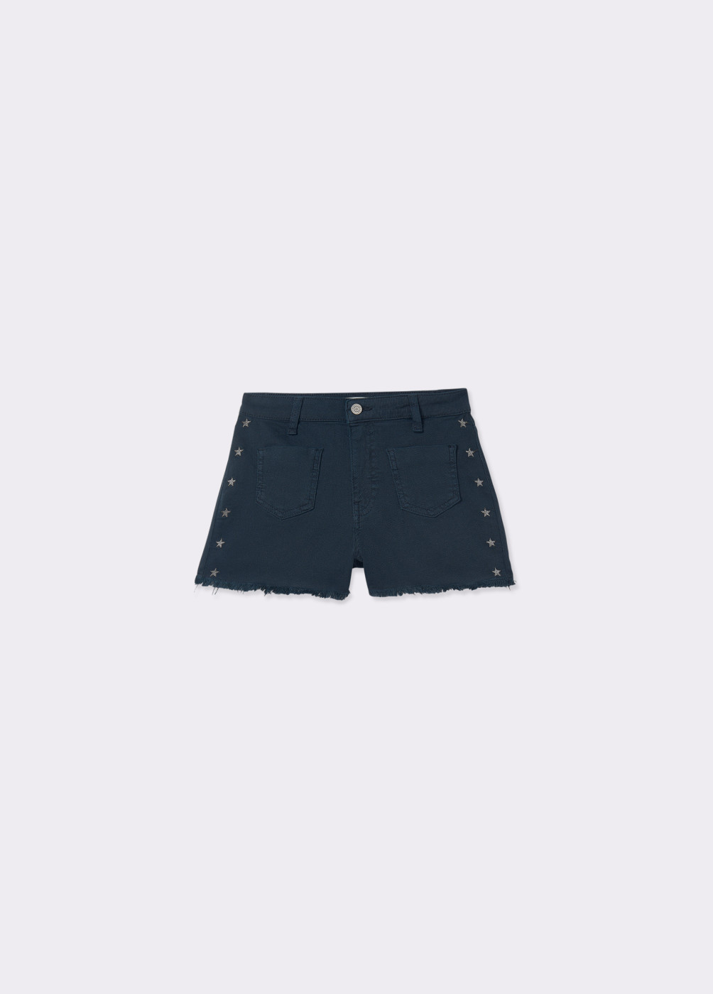 Short con detalle de estrellas bordadas. Cierre mediante cremallera y botón.
