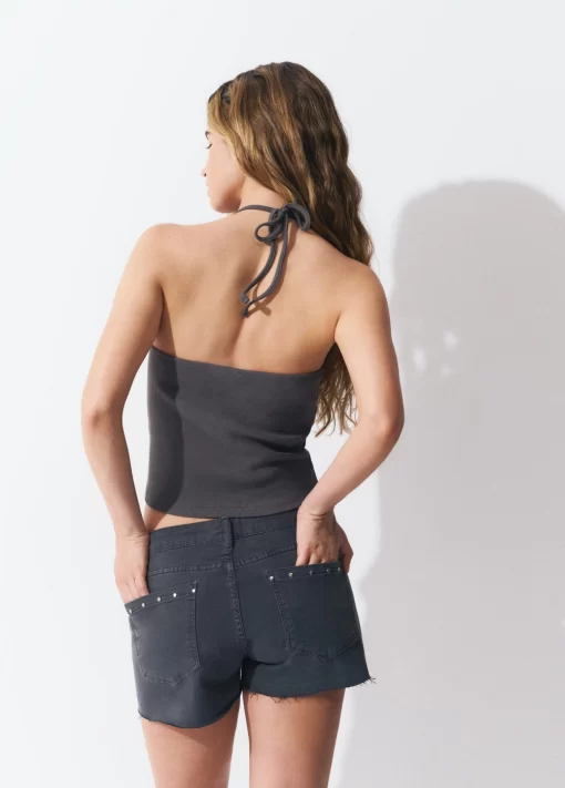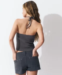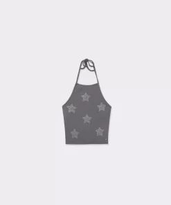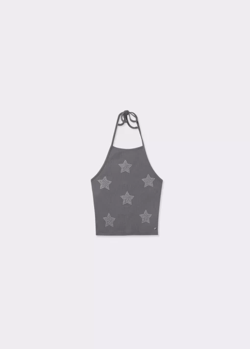 Top sin mangas con cuello halter y detalle de tachas de estrellas.